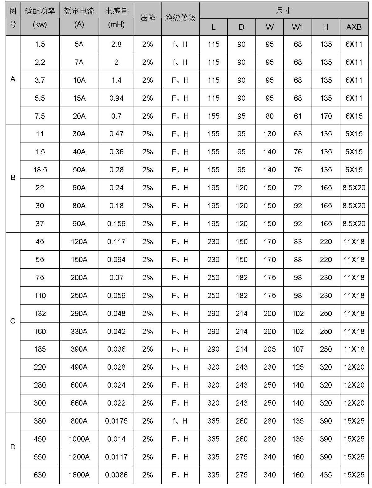 (17)执行标准:IEC289:1987电抗器、GB10229-88电抗器(eqvIEC289:1987)、JB9644-1999半导体电气传动用电抗器